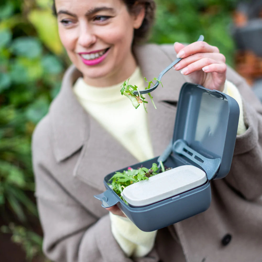 The CANDY READY lunchbox set has everything you need for a healthy lunch on the go. The large CANDY L box and the leak-proof CANDY S container neatly separate salads and dressings, vegetable sticks and dip, sandwiches, and fruit, keeping food appealing until eaten. The KLIKK POCKET cutlery set also fits in the large box, perfectly rounding off the lunchbox set.