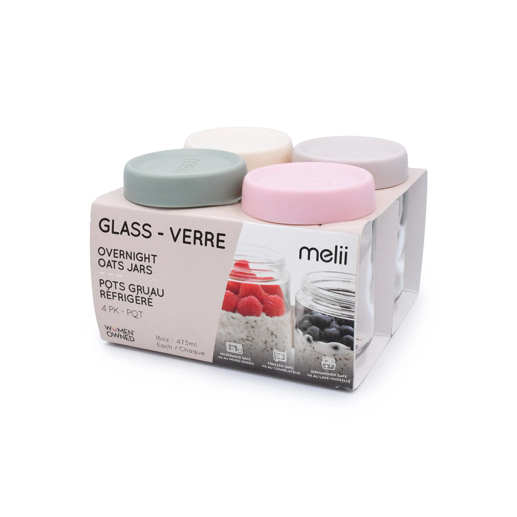 Melii Glass Overnight Oat Jars 4 pack (ivory, oat milk, sage, blush)