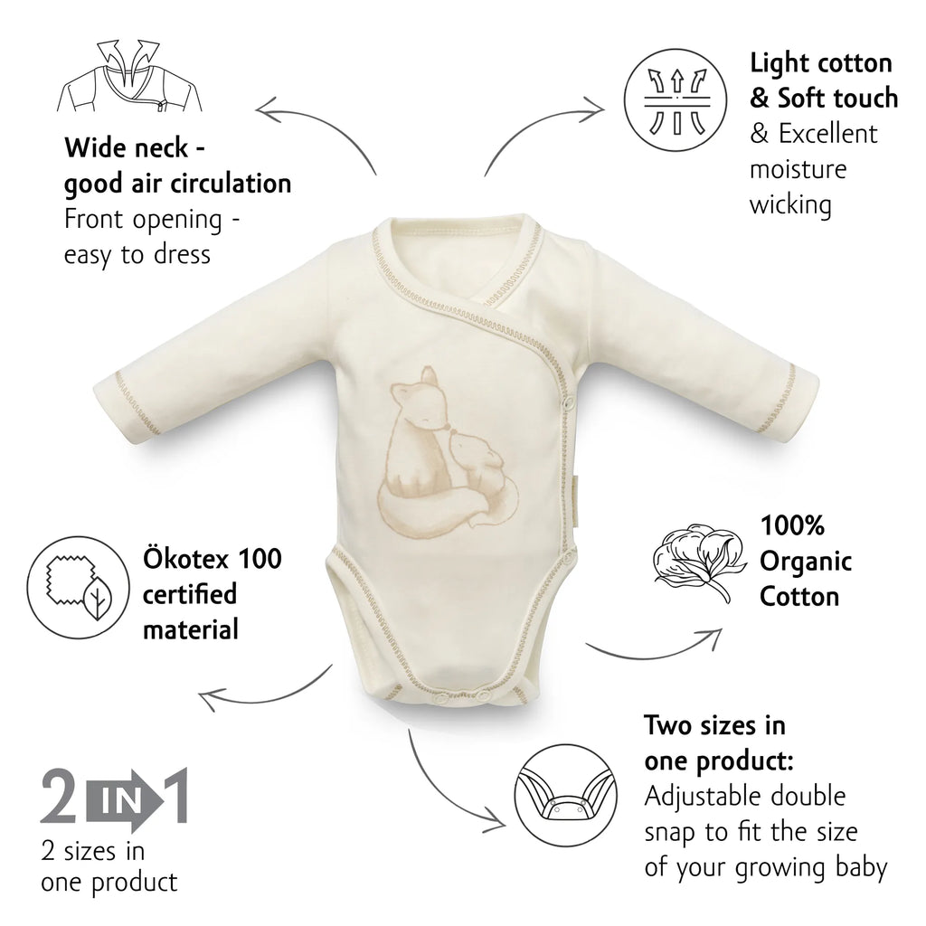 Organic Long Sleeve Kimono Bodysuit - Fox