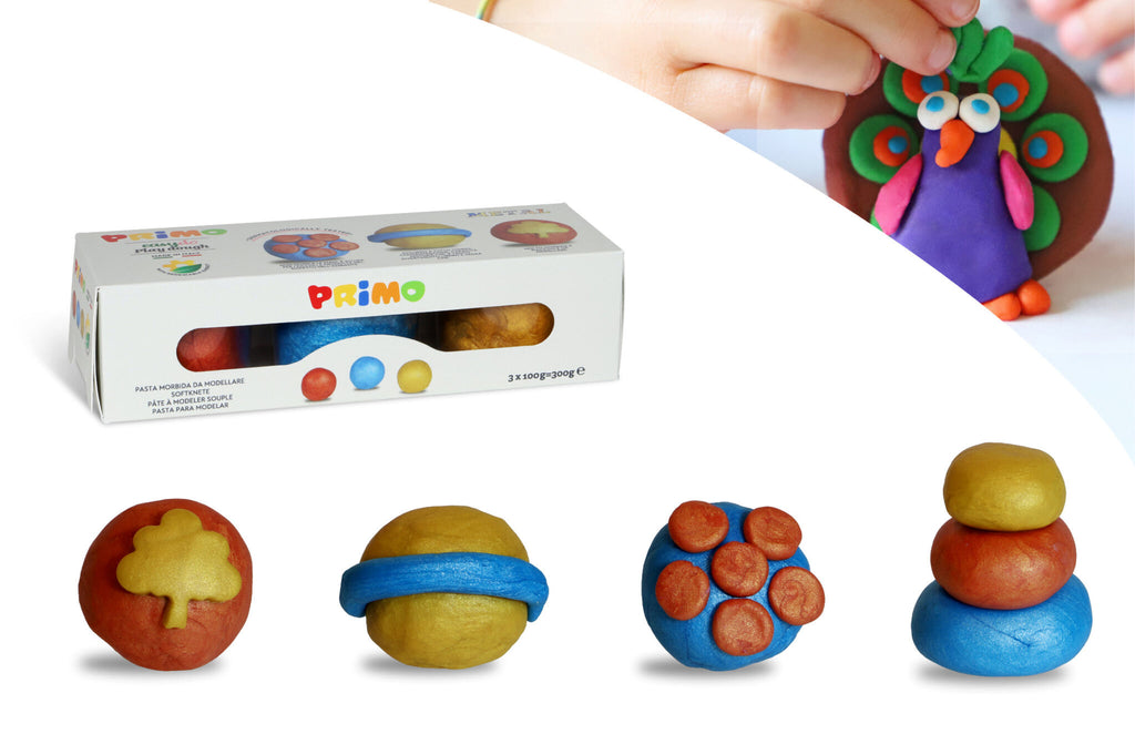 Soft modeling dough set in pots, 3 metallic colours. Easydò with gluten is a coloured modeling dough made with raw materials of 95% plant origin. It is very soft, elastic and pleasant to manipulate and does not dirty your hands. It is made to be remodeled many times if stored away from air to prevent it from drying out. Its colours are vivid and bright and they remain so once it completely dries. It dries slowly. Dermatologically tested.