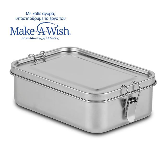 Rectangular stainless steel lunch box "We Care" 1400ml