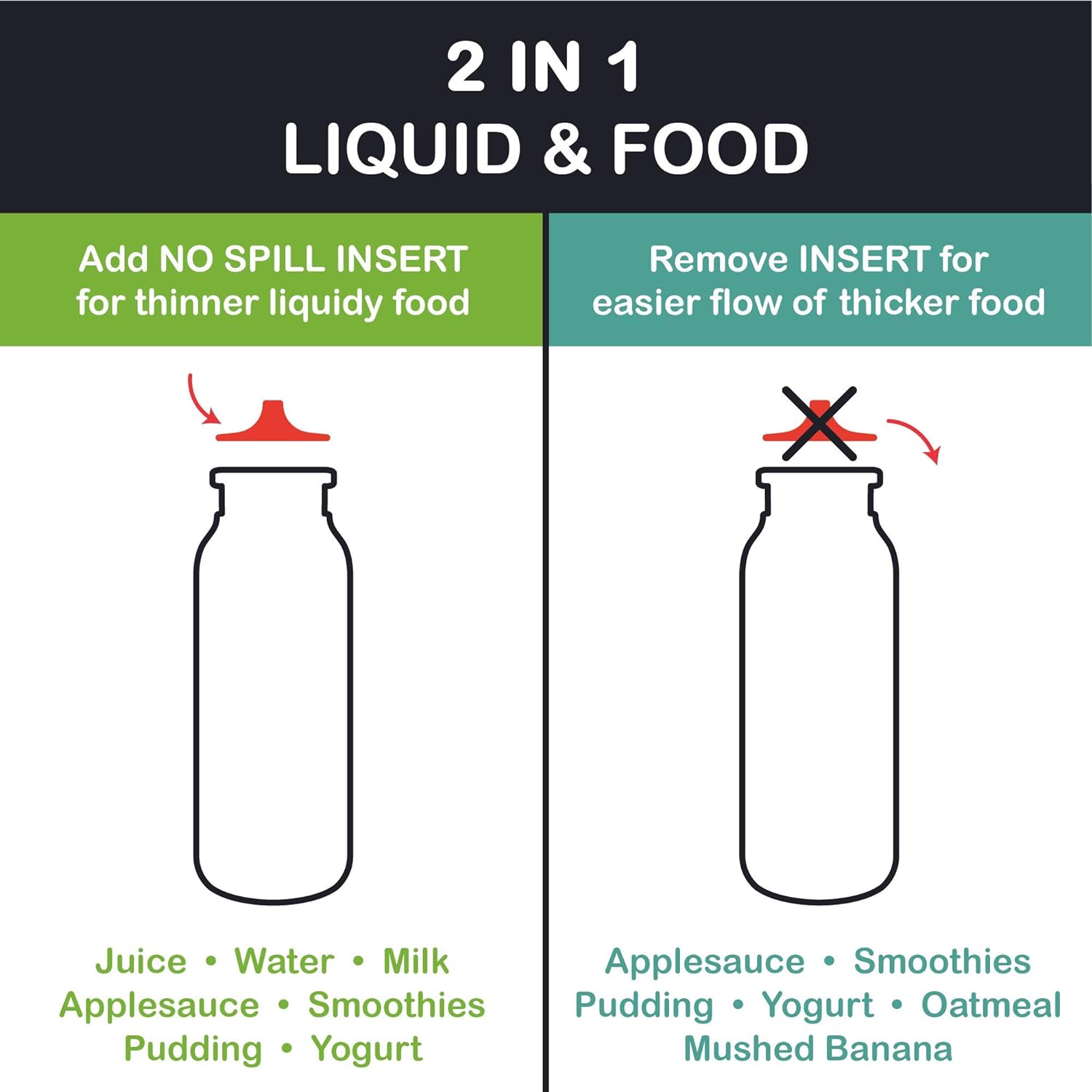 TThe Squeasy Sport™ is the most versatile reusable sport bottle on the market. It was designed to provide not only hydration but easy feeding on-the-go™. It is the only sport bottle that offers the patent pending 2-in-1 removable NO SPILL INSERT™ for no spill or free flow. It works great with any of your favorite hydration drinks, smoothies, protein shakes, etc. The 100% silicone bottle collapses completely flat and can be rolled up for easy storage.